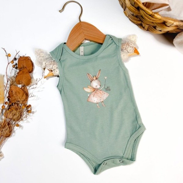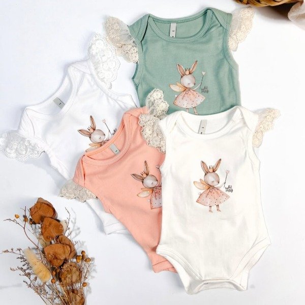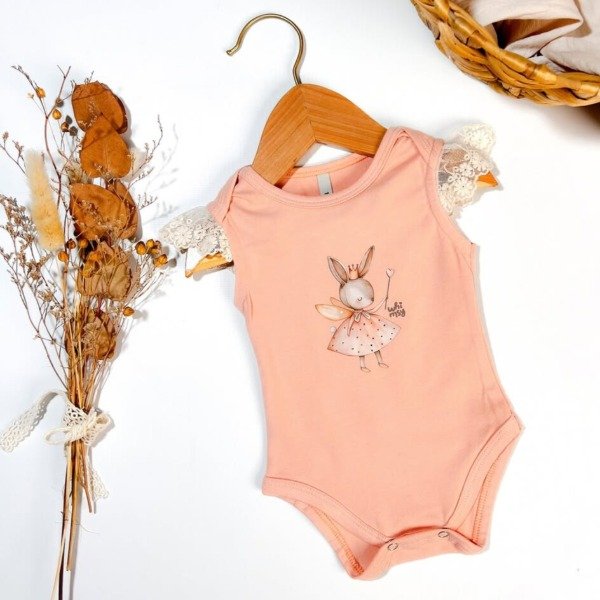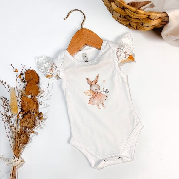 Body confeccionado en algodón elastizado de primera calidad, estampa y detalle de encaje en mangas.