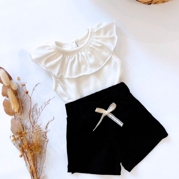 Remera sin mangas en algodón elastizado de primera calidad, con volado de la misma tela en el cuello.